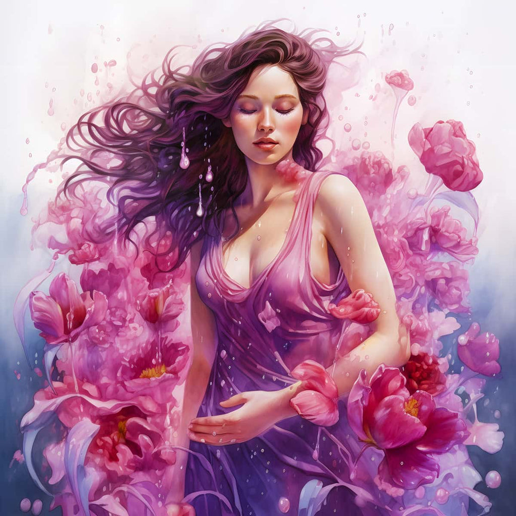 Diamond painting - Rose Woman featuring a serene woman surrounded by vibrant pink roses, part of a Paint by Numbers kit