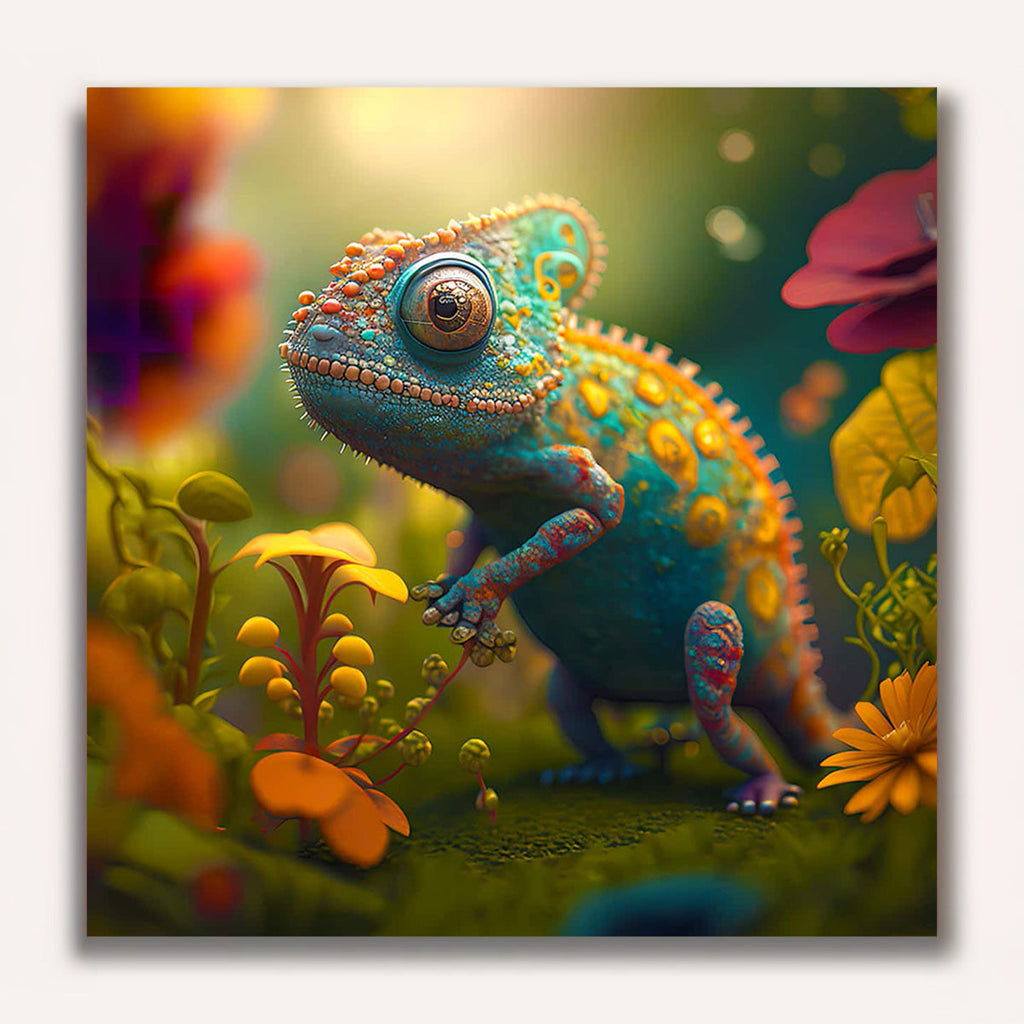 Malen nach Zahlen - Chamäleon im Zauberwald - hochwertige Leinwand - 170523, Chamäleon, Neu eingetroffen, Quadratisch, Tiere