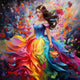 Elegant woman in colorful, flowing dress surrounded by vibrant paint splashes - Paint by Numbers