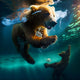 Malen nach Zahlen - Mutterbär mit Kind im Wasser - hochwertige Leinwand - 170523, Bär, Neu eingetroffen, Quadratisch, Tiere