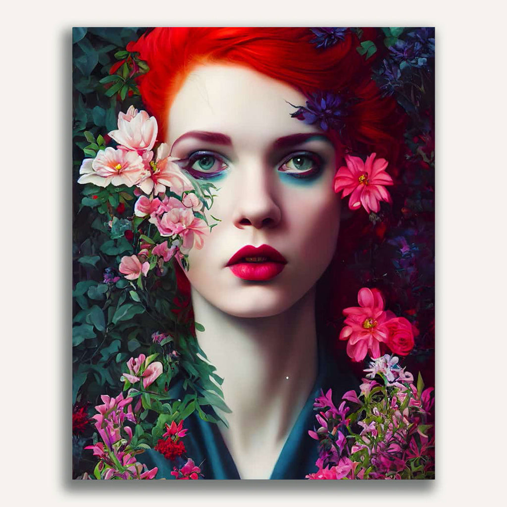 Malen nach Zahlen - Frau mit roten Haaren und Blumen - hochwertige Leinwand - 170523, Blumen, Menschen, Neu eingetroffen, Vertikal